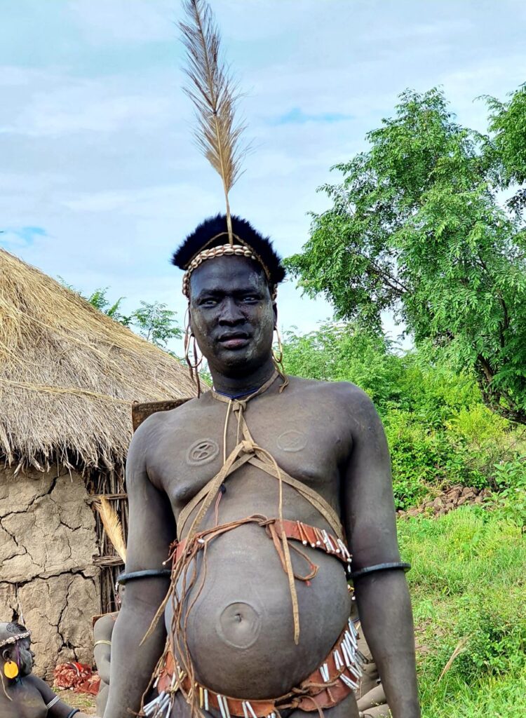 The Bodi live in the Omo valley north of the Mursi. They number about 15,000 people. They speak the Me’en language they call themselves Me’en people. The Me’en are composed of several local groups of about 70,000 people whose territory stretches from the Omo River to the highlands north and northeast of Maji. Two groups of Me’en, the Mela and the Chirim, live in the lowlands east of the Omo and are known to the administration and foreigners as ‘Bodi’.